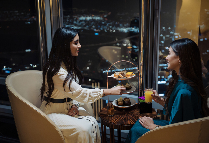 世界で最も高いラウンジ(地上585メートル)を探索し、屋外テラスの特別ツアーで雲の中に浸る体験をお楽しみください。最上級の紅茶やコーヒーのセレクションを堪能するか、ハウスドリンクやシャンパンのグラスをお楽しみください。グルメカナッペとともに提供されます。