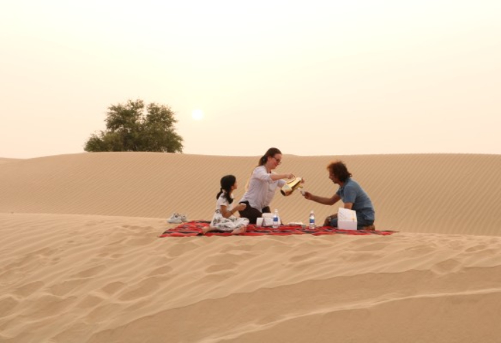 静寂の砂漠の暗闇が少しずつ朝日に照らされていく様子は、まさに感動の体験。カメラをお忘れなく!