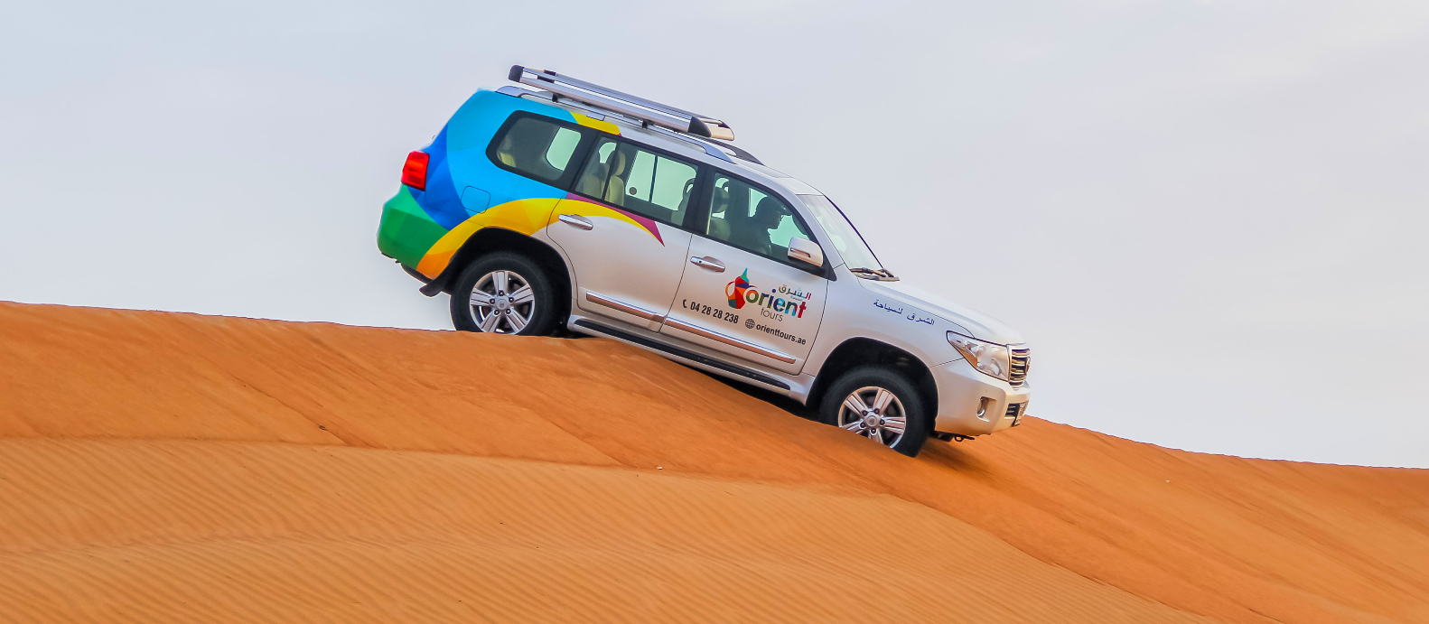 4WD(6名乗り)にて、ドバイ政府公認の専属ガイド兼ドライバーがご案内します。※約1時間