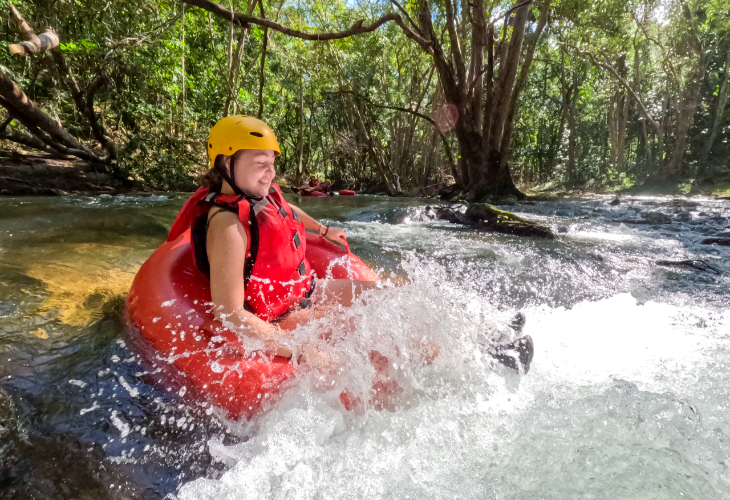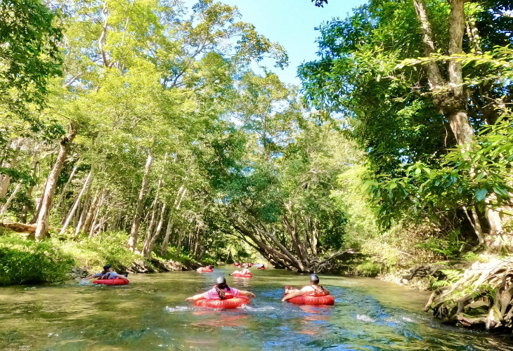 美しい熱帯雨林の中を流れる透明度抜群の川を、浮き輪型のチューブに乗ってゆったりと流れる体験は、