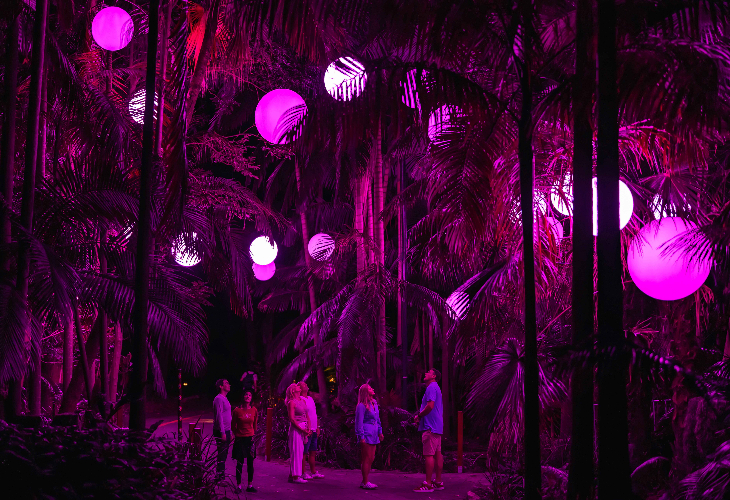 日没後に園内の自然林を舞台にした 光と音のナイトウォーク(約1.5km) を楽しめます。
