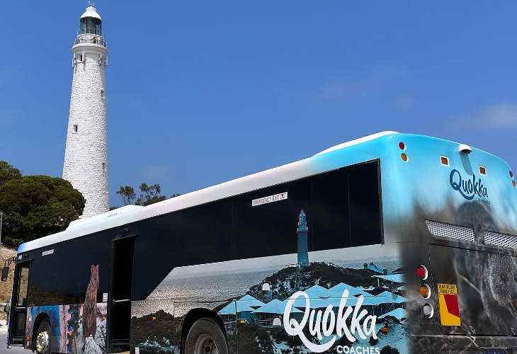 ■お迎えのバスは【Rottnest Fast Ferries】社のバスとなります。車体には【Rottnest Fast Ferries】のロゴが記載されております。お客様ご自身で、ドライバーへ名前を伝えご乗車くださいませ。