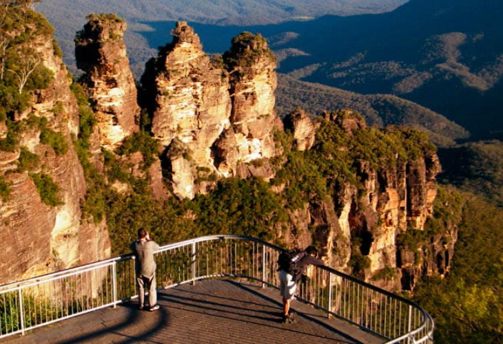 ブルーマウンテンズのカトゥーンバにある⼈気の展望スポットで、「スリー・シスターズ」と雄⼤な渓⾕の絶景を⼀望できる場所です。