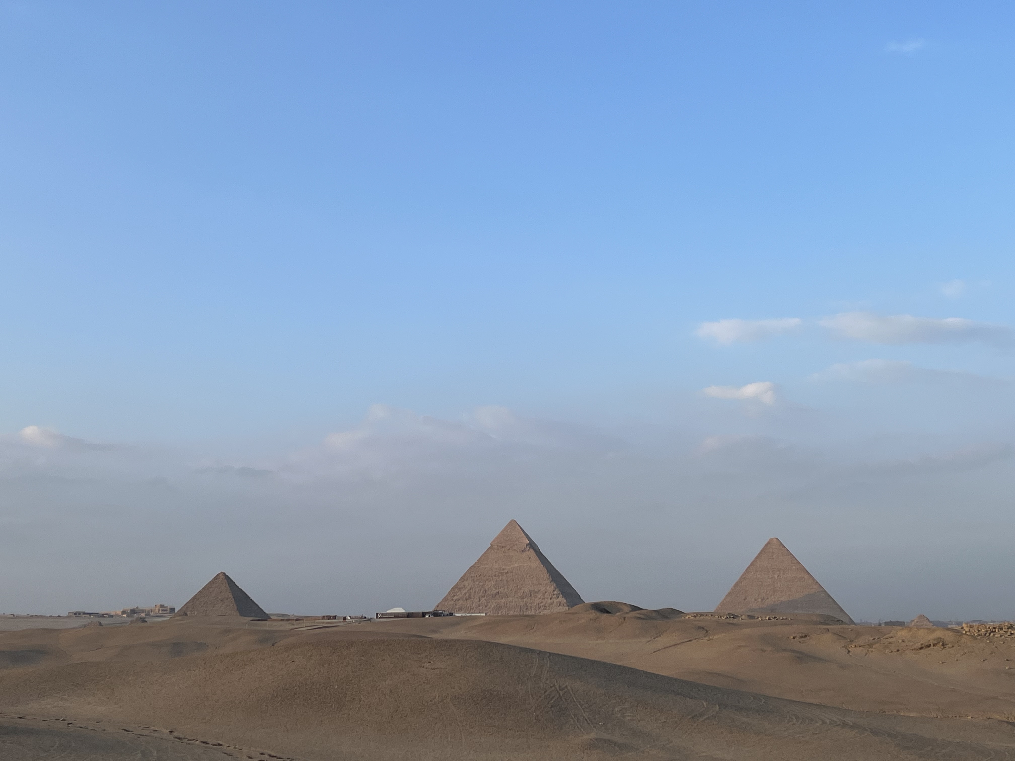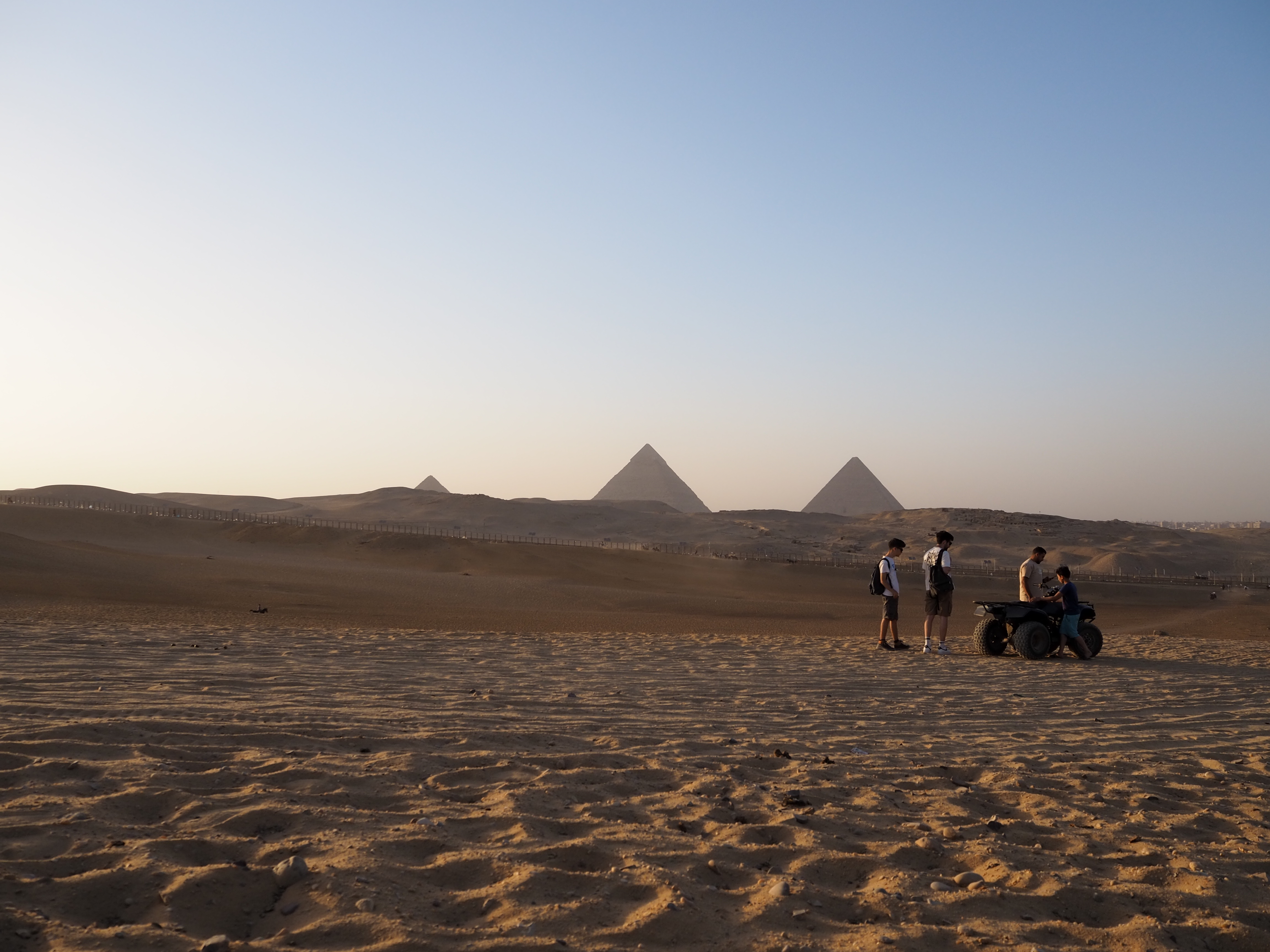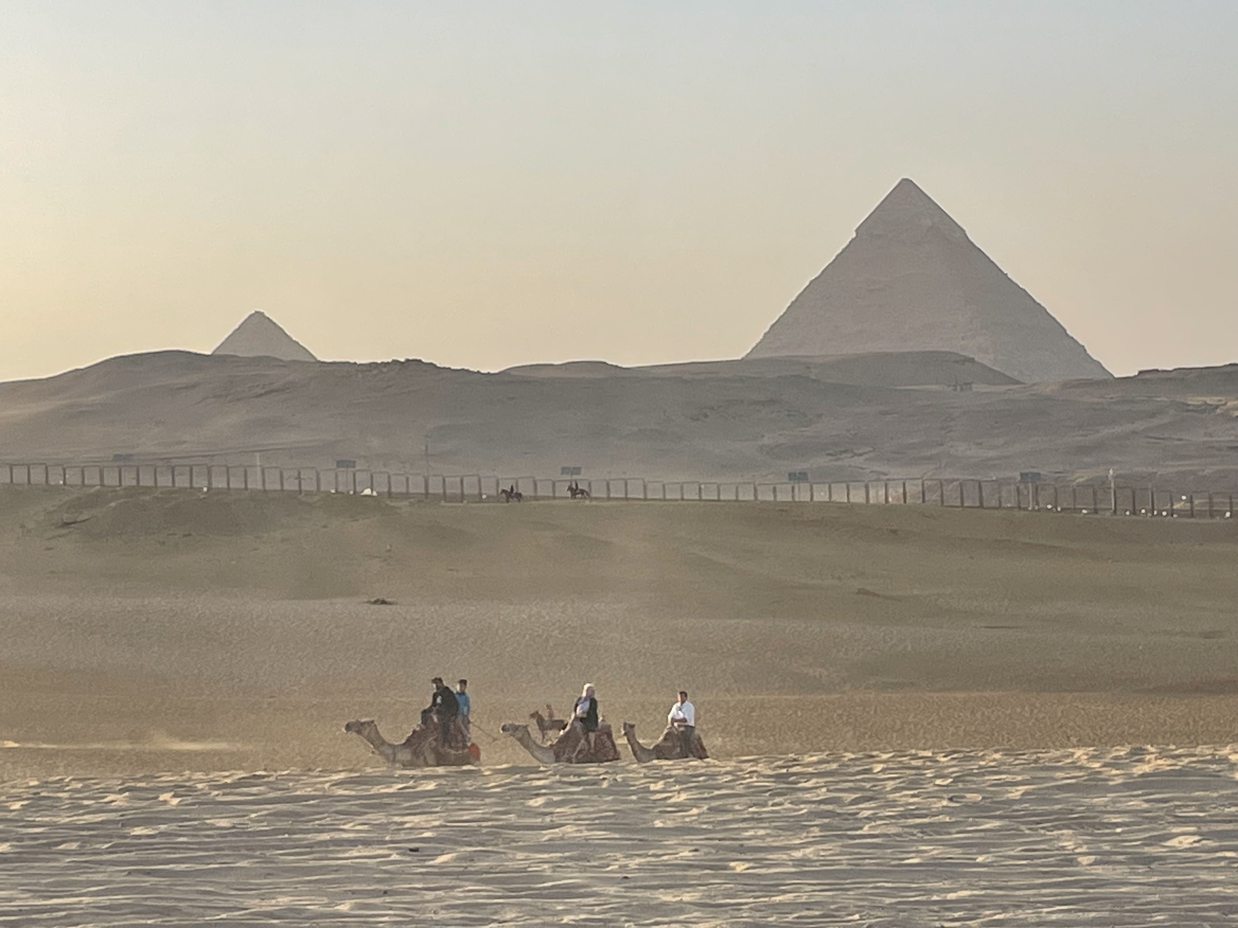 砂漠の入り口辺りからピラミッドが三基見えるあたりまでラクダに乗り砂丘を登りました。