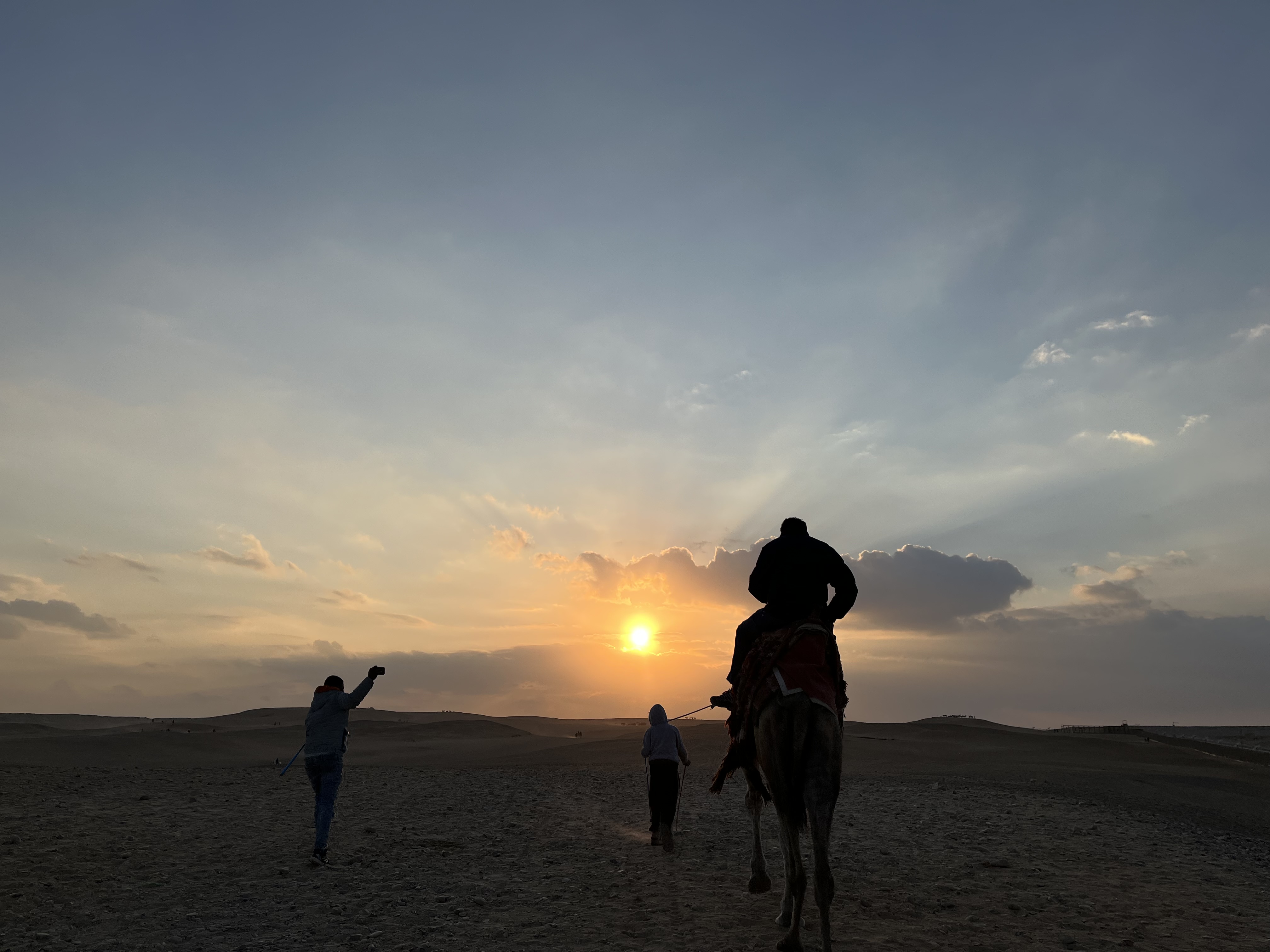 【日本語ガイド】【半日】黄昏のエジプトで悠久の時に思いを馳せるサンセットポイントでの夕日鑑賞&どきどきラクダ乗り体験