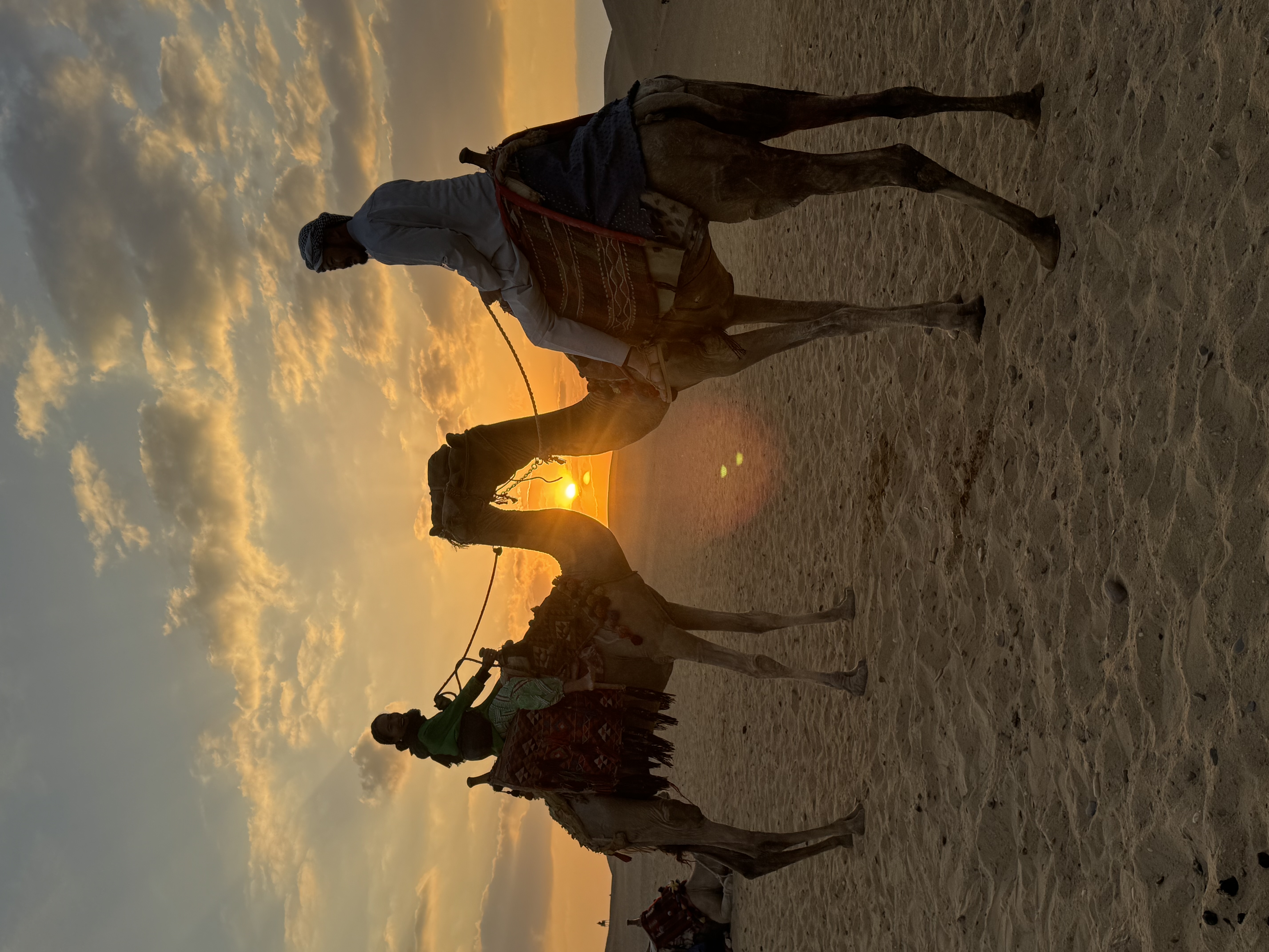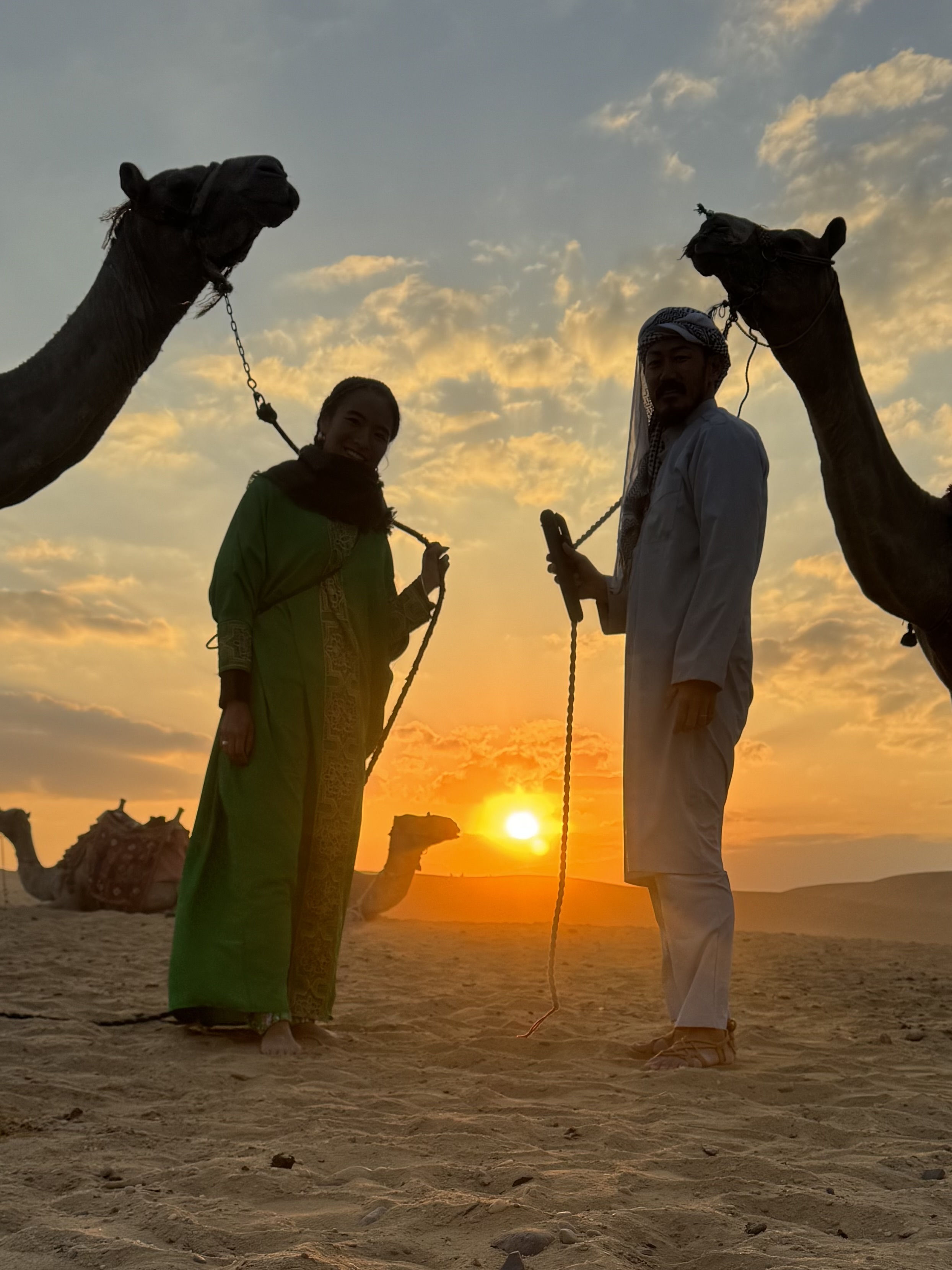 当初ラクダに乗ることは希望していなかったのですが夕暮れと砂漠が見たくてお願いしました。想像以上にとても良かったです。ドライバーさん、ガイドさんお二人共とても親切で紳士的で良い方でした。夕暮れの砂漠にピラミッドにラクダ、忘れられない光景です。ラクダもきちんとお世話されているようで人懐こくて穏やかで可愛かったです。本当に素晴らしい景色を見る事ができます!