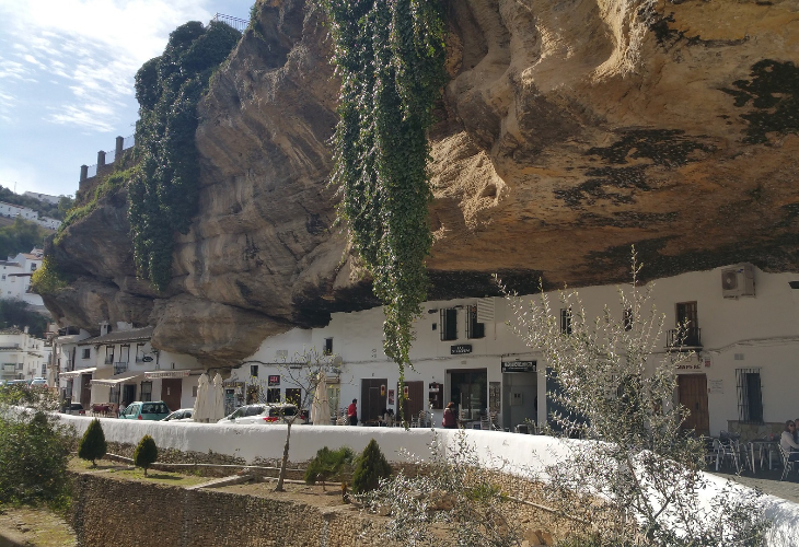 せり出した岩の下に建物が作られたセテニルでしばし写真ストップ。特異な光景をお楽しみください。