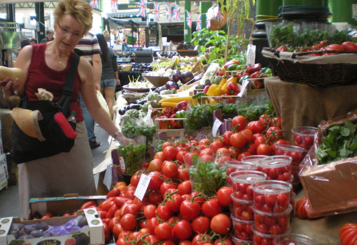 テムズ川の南になるのは、中心になるのはなんといっても中世から続くロンドンの胃袋−バラ・マーケット(月曜休業)。