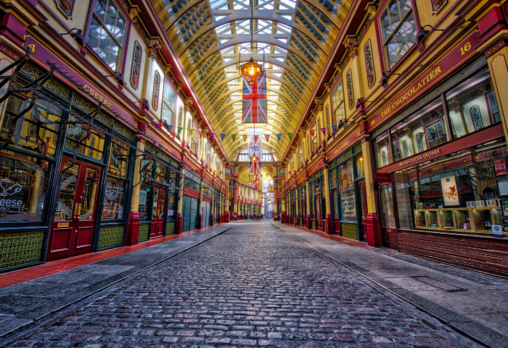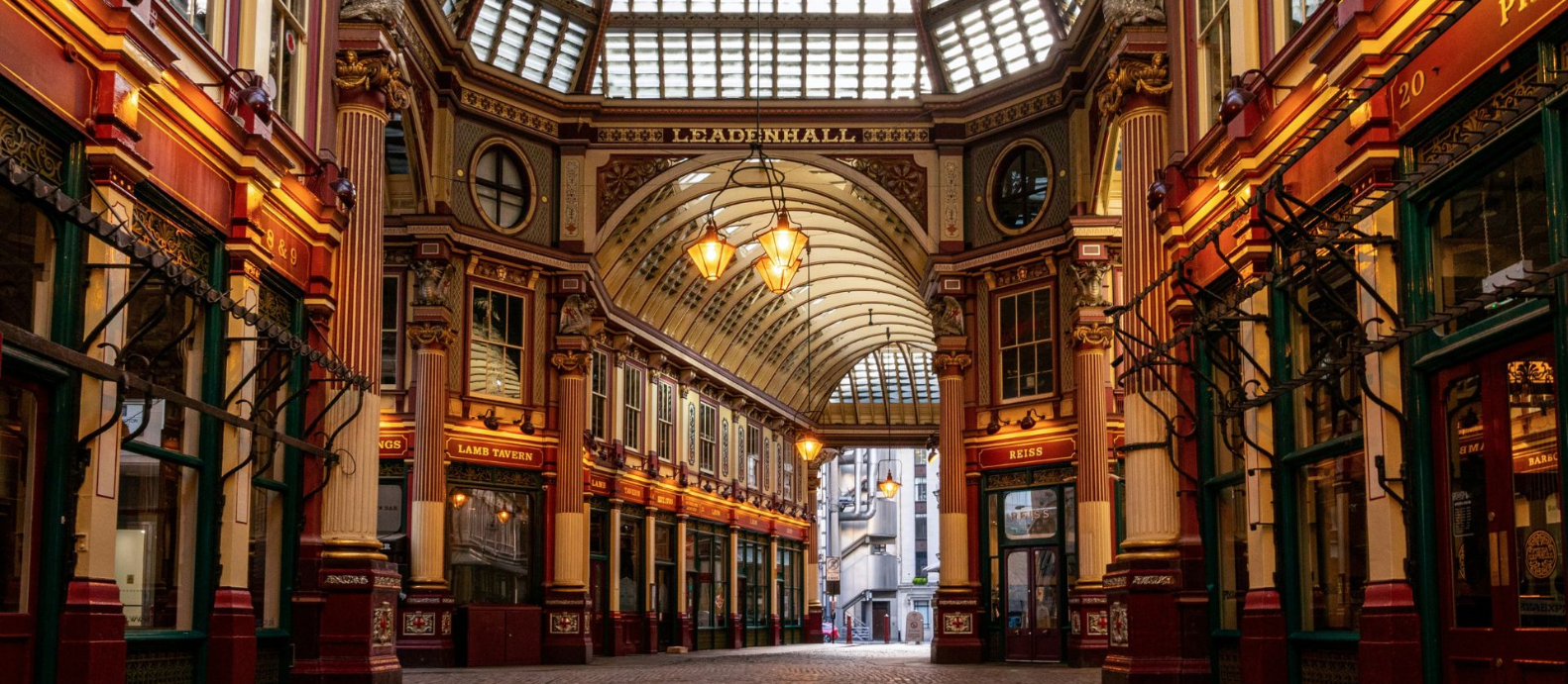 ロンドンの歴史ある商業アーケード、リーデンホールマーケット。