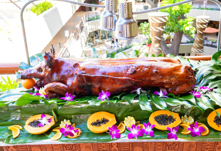 ローストポークやプライムリブを堪能しながら、ウクレレ演奏やフラショーでハワイの伝統文化を満喫できます。