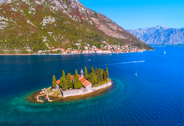 ペラストからボートで数分の距離にある人工の島で、「岩の聖母教会」があります。島には美しい壁画があり、歴史的な展示物や教会内部の装飾が観光客に人気です。ペラストの海上からの眺めも美しく、必見のスポットです。