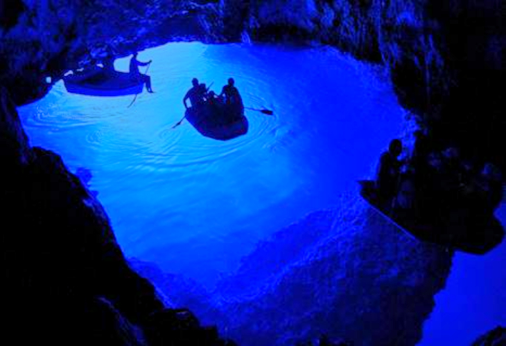 ・太陽光が洞窟内で反射し、海面が幻想的な青色に輝く自然現象