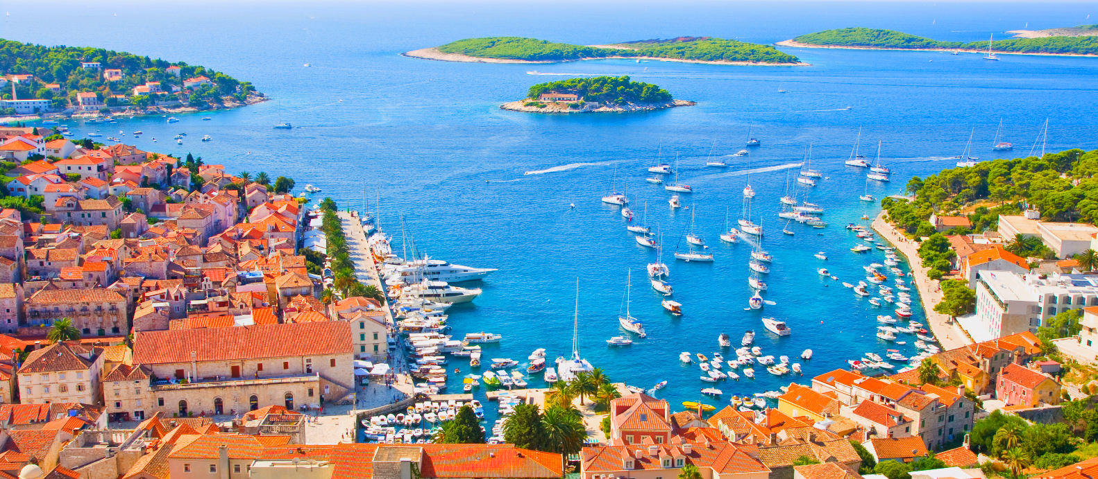 ・フヴァル沖に点在する緑豊かな小島群