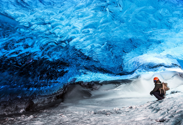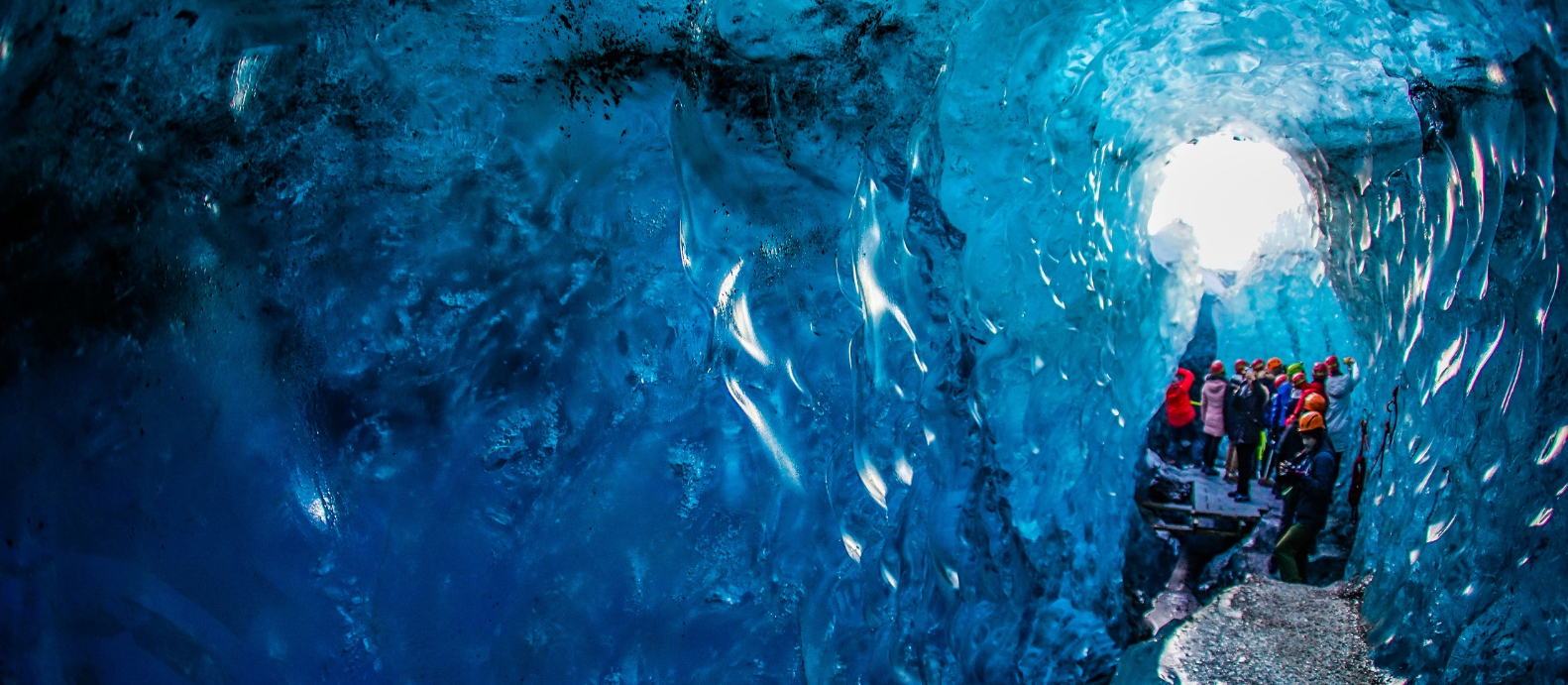 ツアーハイライトの1つ、氷の洞窟へ!ヨーロッパ最大の氷河の洞窟で自然の美しさを心ゆくまでご堪能ください。