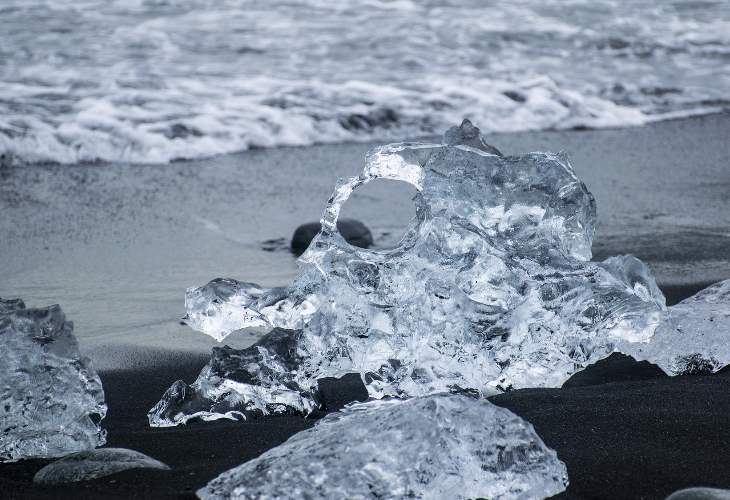光り輝く氷塊が黒砂海岸に点在するダイヤモンドビーチをご見学ください。