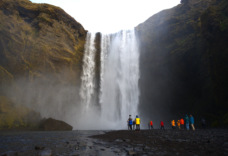 横幅は25m、高さは60mを超える迫力ある「スコーガフォスの滝」間近で見る滝は圧倒的スケールです。