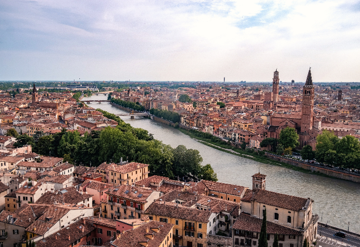 愛の街ヴェローナは、街を散策するだけでロマンティックな雰囲気が味わえます。またローマ時代のアリーナもあり、街の長い歴史を垣間見ることができます。