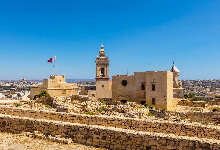 丘の上に築かれた要塞都市で、街全体が歴史的建造物。城壁からはゴゾ島の絶景パノラマが広がります。