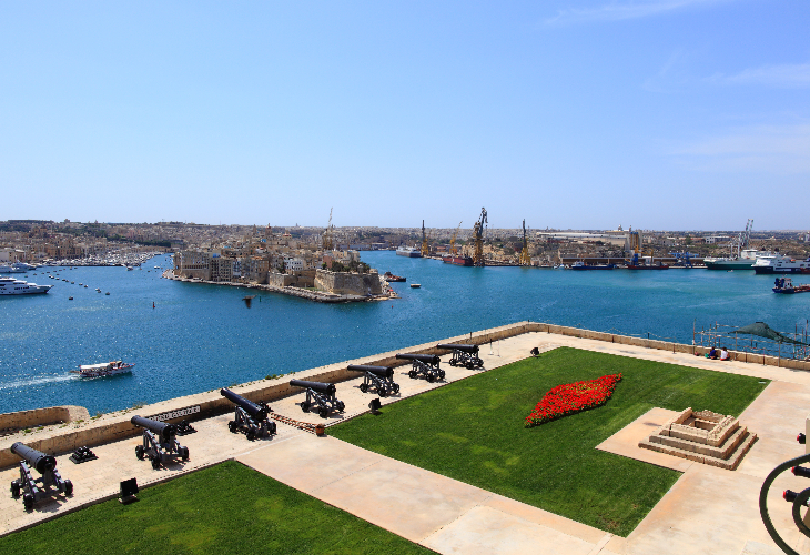 アッパーバラカガーデンはグランドハーバー、スリーシティーを見渡すことができる展望デッキのある公園です。正午には時報を兼ねた大砲を毎日打ち上げていることでも有名です。