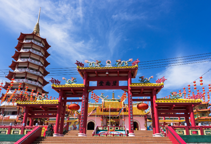 ・コタキナバルで最も有名な仏教寺院の一つで、美しい赤色の建物が特徴。