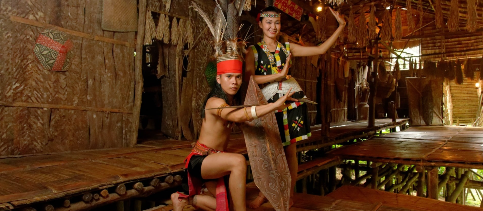 MARI MARI ビレッジは、サバ州に暮らす先住民族の伝統文化や暮らしを体験型で学べる文化村です。村内にはカダザン・ドゥスン族やムルット族など、複数の民族の伝統家屋が再現され、それぞれの住居様式や生活習慣をガイド付きで巡ります。