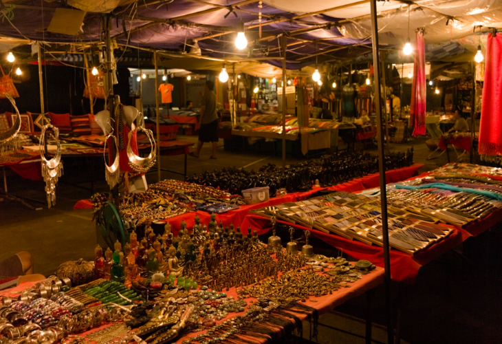 夜になり、東南アジア独特の活気あふれる市場でショッピング。