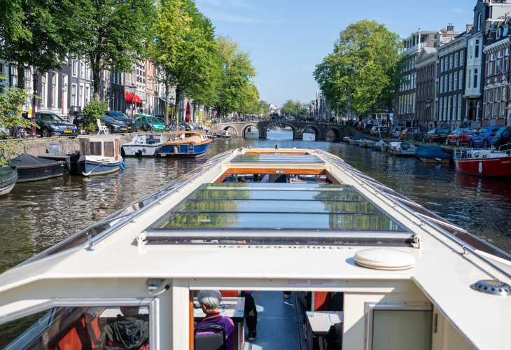 ユネスコ世界遺産にも登録されている美しいアムステルダムの運河を、快適なラグジュアリー船で75分間ゆったりと巡ります。