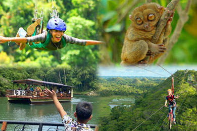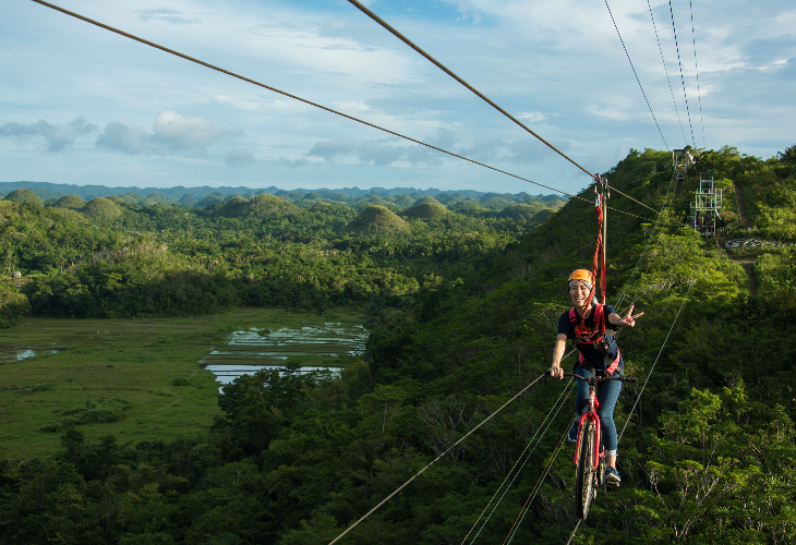 2名以上参加 【日本語ガイド】セブ発着ボホール陸網羅ツアージップライン・ターシャ・スカイサイクリング・チョコレートヒルズ&ロボックリバークルーズランチ♪(アクティブプラン①)