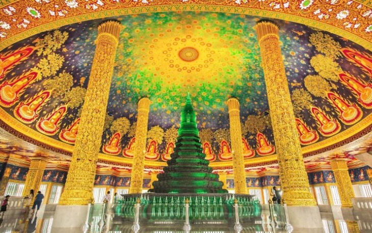 ■高さ約80mの白亜の大仏塔と、内部5階にある幻想的なエメラルドグリーンの大仏塔(仏舎利塔)が人気。