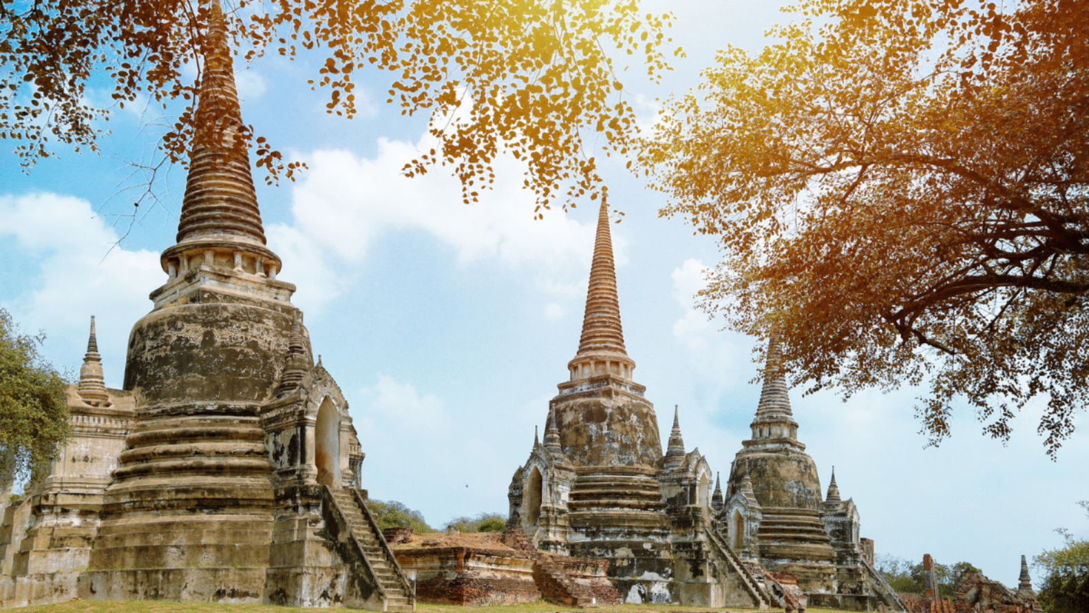 境内には、アユタヤの象徴ともいえる15世紀に建てられた、歴代3人の王の遺骨を納めた仏塔が静かに並んでいます。