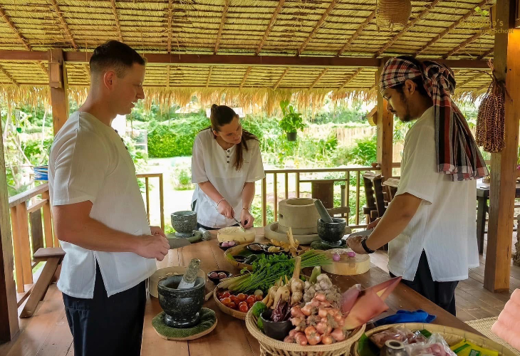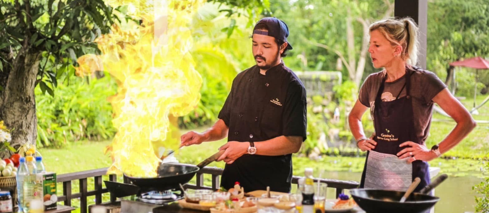 タイの伝統的な料理について学びたい方にぴったりの体験です。調理の前には、市場を訪れるため、現地の食文化等をリアルに体験できます!マッサマンカレー、グリーンカレー、トムカーガイ(鶏肉のココナッツスープ)、 マンゴーもち米など、日替わりでメニューが変わります。 英語ツアーになりますが、先生は簡単な英語などで説明してくれますので、英語が苦手な方もお楽しみいただけます。