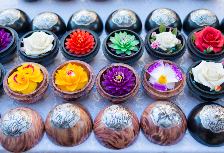 この仏像は、毎年4月13日~15日のソンクラーン(水掛け祭り)の際には、大勢の市民に参拝してもらえるようにと台に乗せられて市内を巡回します。ほかにも、お堂の壁には色とりどりの壁画が施され、この寺院の見どころのひとつとなっています。また、地元の人々の間では、辰年の人にご利益がある寺院としても知られています。