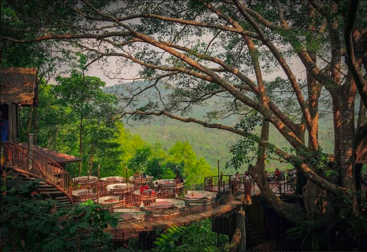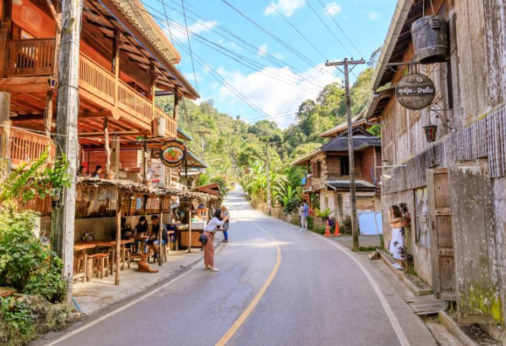 チェンマイから車で約2時間の山あいにある、静かで美しい村メー・キャンポン村です。チェンマイの中で、タイ人に一番人気の小さな村です。標高約1,300 m、一年中を通じて涼しく快適な気候をお楽しみいただけます。村に到着して最初に訪れるのは、橋を渡ってたどり着くカフェです。このカフェは、SNS映えスポットとして人気がでた場所です。カフェからの広大な自然を感じることができる景色は必見です。