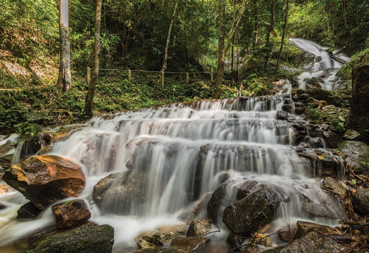 メーカンポン滝は、7段階にわたる滝が連なる美しい景観が特徴です。各段には自然のプールが形成されており、冷たい水で足を浸すことができます。特に最下段のプールは、リラックスした時間を過ごすのに最適です