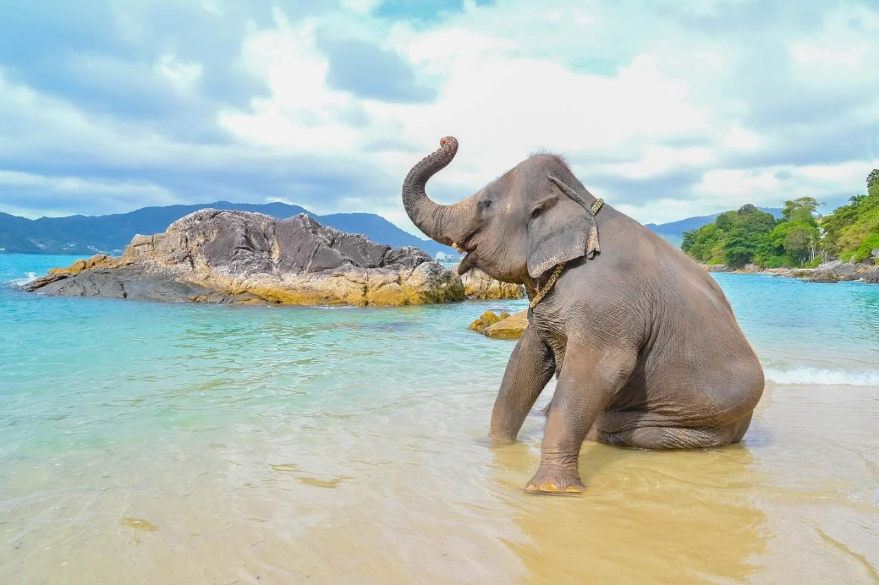 【午前半日】プライベートビーチでゾウさんと海水浴&撮影会! ゾウの背中に乗ってビーチ散歩もできる~タイグルメ付♪