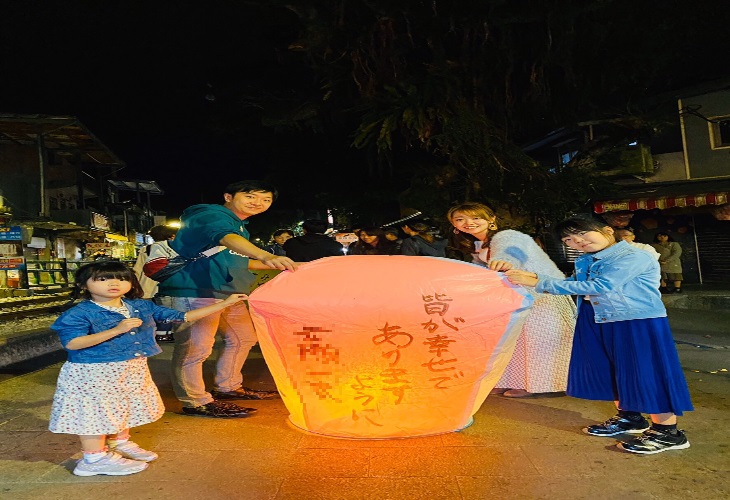 夕食代、ランタン上げ体験(すべてのお店同じ価格で、単色NT200/4色250に1つ)