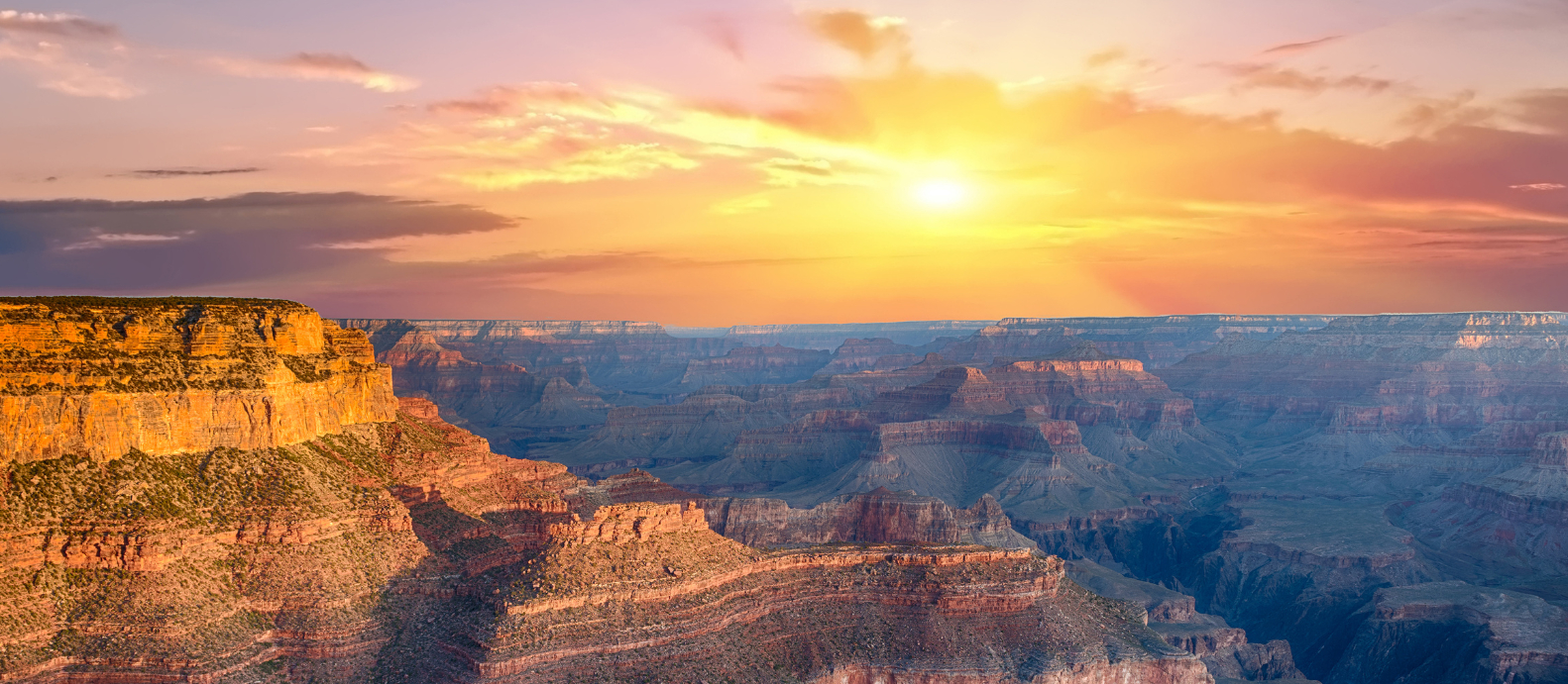 夕日に染まる最も美しいグランドキャニオンの景色をお楽しみください。