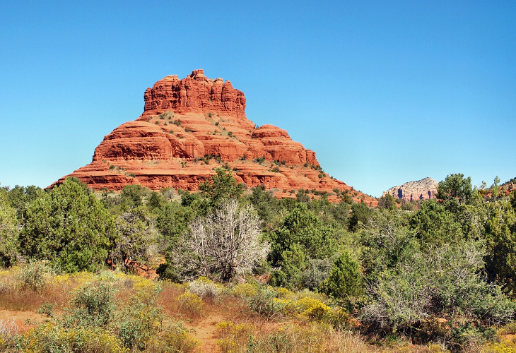 4大ボルテックスの一つ。フェニックスからセドナに向かうと、一番最初に迎えてくれるのがベルロックです。4大ボルテックスの中でもひときわ赤く、シンプルな鐘の形が印象深い場所です。男性性のエネルギーをもつとされ、岩肌に浮き出た水晶が多く見られるのも特徴の一つです。