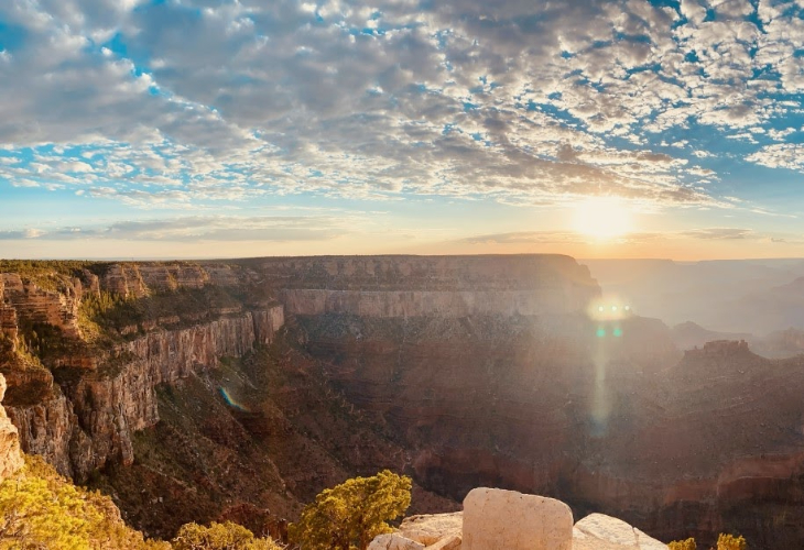 グランドキャニオンから昇る至極の朝日をお楽しみください。
