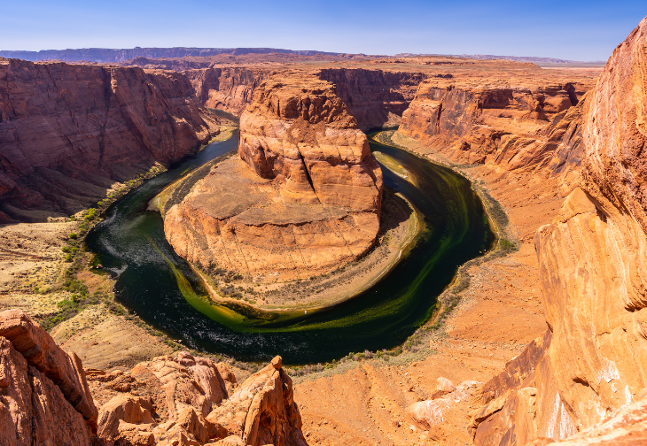 蛇行するコロラド川でも、ヘアピンカーブのように曲がる様子を見られるビューポイント。