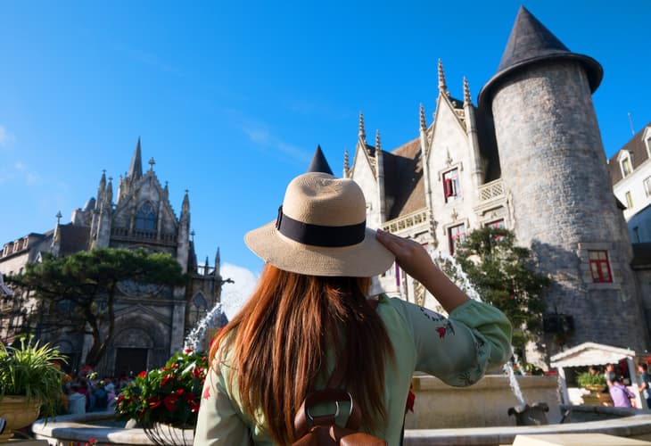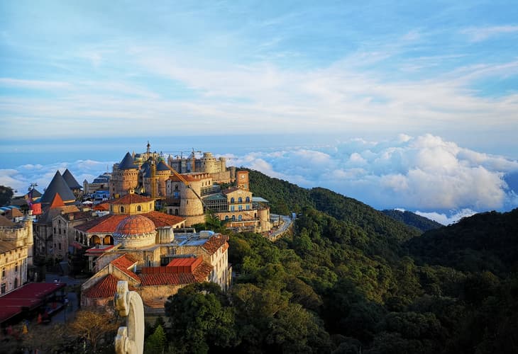 大人気の「バーナーヒルズ」!世界最長級のロープウェイに乗って、絶景&写真映えで話題の『ゴールデンブリッジ』やフランス統治時代の面影が残る建物、壮大な寺院へ。お子様も楽しめるアトラクション満載のテーマパークあり!