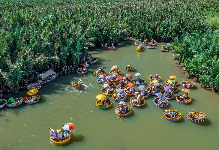 市場散策の後、ホイアン郊外の「ココナッツ村」で名物『お椀ボート』に乗ってクルーズ!